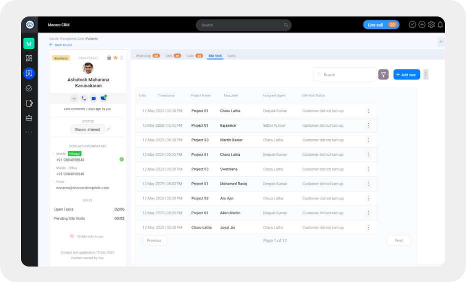 Transforming the way healthcare organizations interact with their patients is at the forefront of Mocero's CRM solution. Through personalized communication, automated follow-up reminders, and targeted outreach, our CRM takes patient engagement to new heights. By harnessing the power of data-driven insights, healthcare providers can proactively address patient needs, deliver relevant health resources, and foster a sense of empowerment and involvement in their care journey. From appointment scheduling to post-treatment follow-ups, our Healthcare CRM ensures a seamless and patient-centric approach, resulting in improved patient satisfaction, better health outcomes, and ultimately, stronger patient-provider relationships.